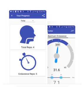La aplicación Tonguemeter presenta dos ejercicios de fortalecimiento de la lengua: Uno diseñado para aumentar la fuerza máxima de la lengua y otro para aumentar la resistencia de la lengua del usuario. Utilizando los principios de la ciencia del ejercicio, el usuario establecerá un rango de presión objetivo para un ejercicio óptimo. El usuario puede elegir entre el tipo de ejercicio de fuerza o resistencia, y la aplicación Tongueometer mostrará un medidor con el rango objetivo resaltado, contará el número de repeticiones exitosas, mostrará la lectura de presión en tiempo real, proporcionará biorretroalimentación durante todo el ejercicio y almacenará datos de cada sesión de práctica.